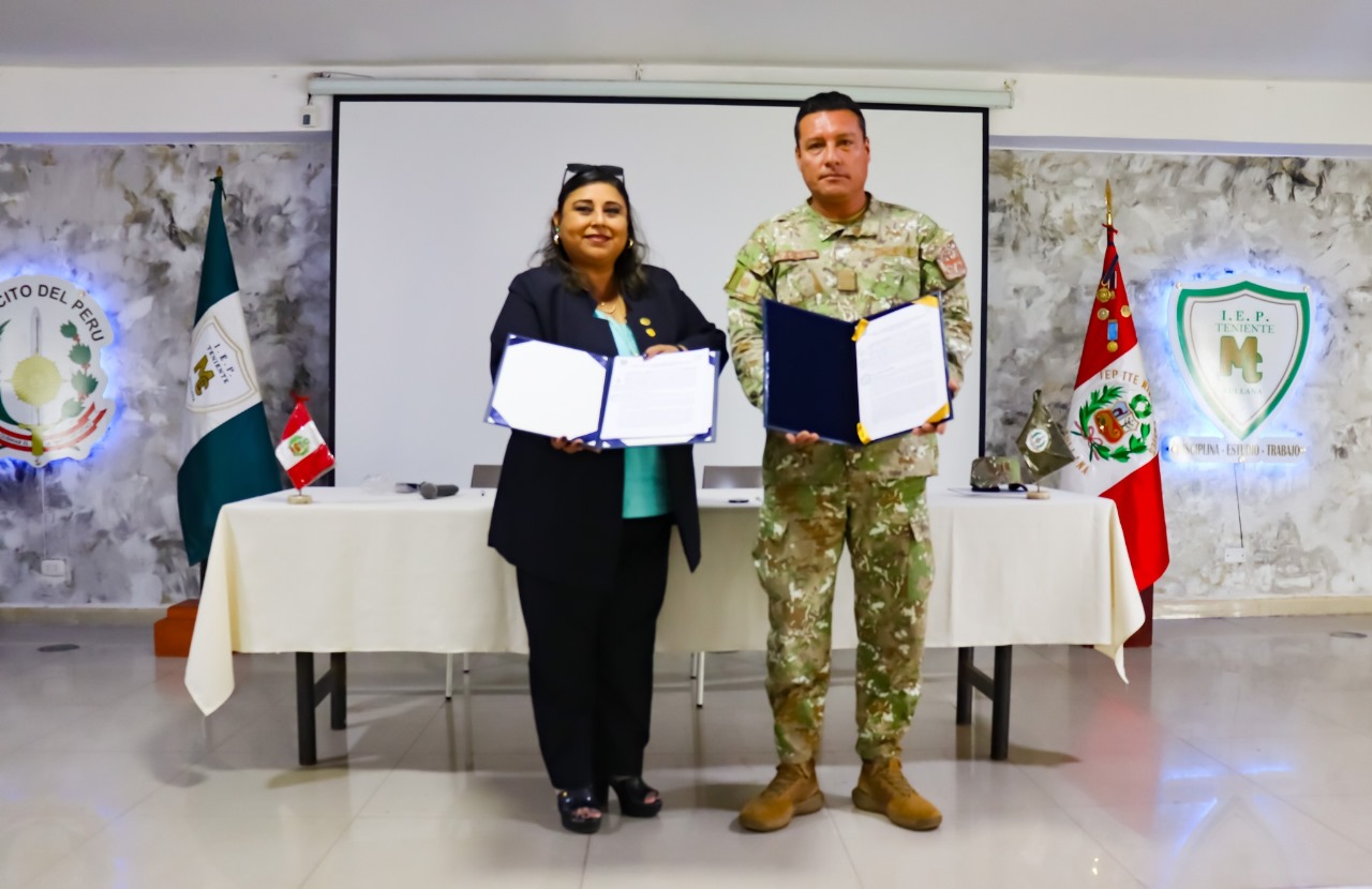 Con UGEL Sullana se llevó a cabo la firma de un importante 𝐂𝐨𝐧𝐯𝐞𝐧𝐢𝐨 𝐝𝐞 𝐂𝐨𝐨𝐩𝐞𝐫𝐚𝐜𝐢ó𝐧 𝐈𝐧𝐭𝐞𝐫𝐢𝐧𝐬𝐭𝐢𝐭𝐮𝐜𝐢𝐨𝐧𝐚𝐥 𝐞𝐧𝐭𝐫𝐞 𝐥𝐚 𝐔𝐧𝐢𝐝𝐚𝐝 𝐝𝐞 𝐆𝐞𝐬𝐭𝐢ó𝐧 𝐄𝐝𝐮𝐜𝐚𝐭𝐢𝐯𝐚 𝐋𝐨𝐜𝐚𝐥 (𝐔𝐆𝐄𝐋) 𝐝𝐞 𝐒𝐮𝐥𝐥𝐚𝐧𝐚 𝐲 𝐧𝐮𝐞𝐬𝐭𝐫𝐚 𝐈𝐧𝐬𝐭𝐢𝐭𝐮𝐜𝐢ó𝐧 𝐄𝐝𝐮𝐜𝐚𝐭𝐢𝐯𝐚 𝐏𝐫𝐢𝐯𝐚𝐝𝐚 "𝐓𝐭𝐞. 𝐌𝐢𝐠𝐮𝐞𝐥 𝐂𝐨𝐫𝐭é𝐬". Este convenio tiene como objetivo realizar un trabajo conjunto para coadyuvar en la formación integral de nuestros niños, jóvenes y adolescentes, hijos del personal del Ejército del Perú y la comunidad civil. La firma estuvo a cargo de la Dra. Maximina Angélica Deza Sánchez, Directora de la UGEL Sullana, y el Crl. E.P. Albert Halder Valles Aschieri, Director de la IEP. "Tte. Miguel Cortés". Con este acuerdo, reafirmamos nuestro compromiso de brindar una educación de calidad que forme ciudadanos integrales y comprometidos con el desarrollo de nuestra comunidad.